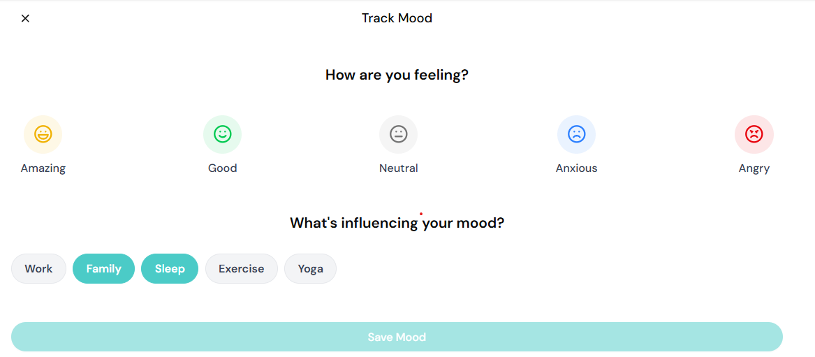 - Visual Indicators: Color-coded mood displays for easy pattern recognition