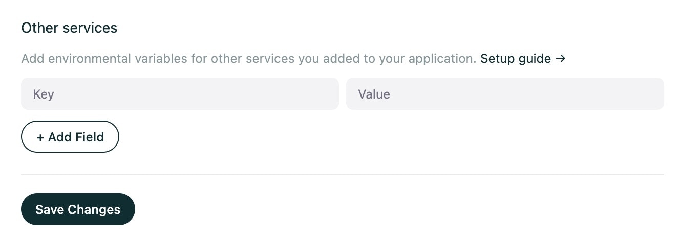 Need to integrate with other services? You can add custom environment variables for any additional APIs or services.1